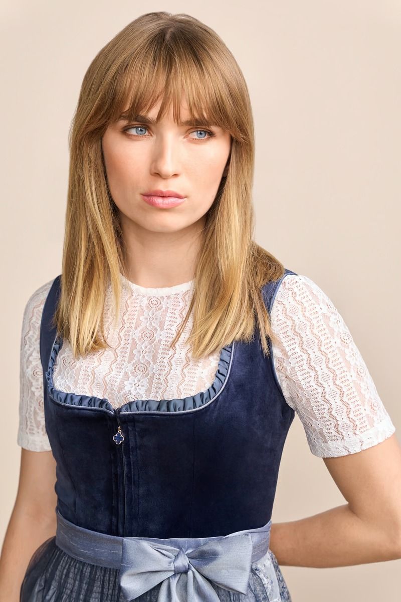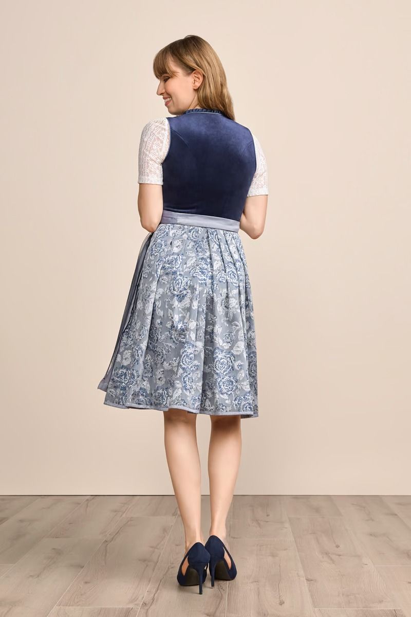 Onze Joelina fluwelen dirndl is een echte blikvanger! Het lijfje is effen en gemaakt van fluweel, de rechte halslijn roept een mooi decolleté op. De rok is bedekt met een bloemenpatroon. De dirndl sluit met een rits aan de voorkant. De eenvoudige schort rondt de look perfect af. De rok heeft een knielengte van 60 cm. Met de Joelina fluwelen dirndl ben je perfect gekleed voor elk volksfeest.
