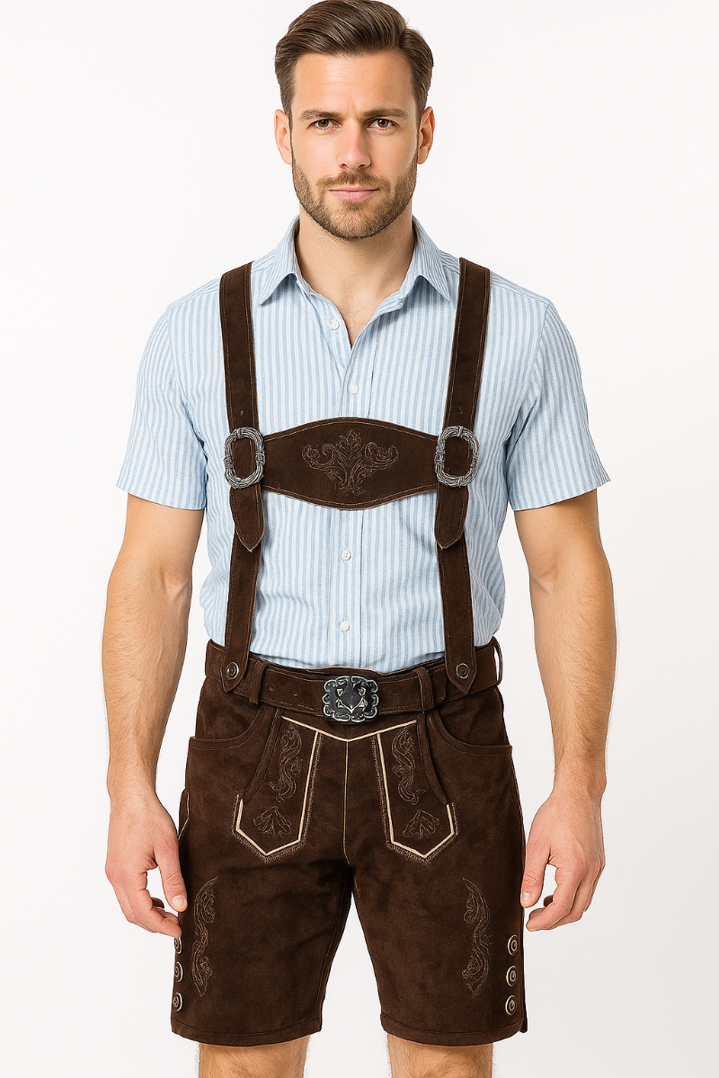 De lederhose Moritz is gemaakt van 100% rundleder. Deze lederhose wordt geleverd met bretels en een fraaie riem. Wij raden een maat groter dan normaal