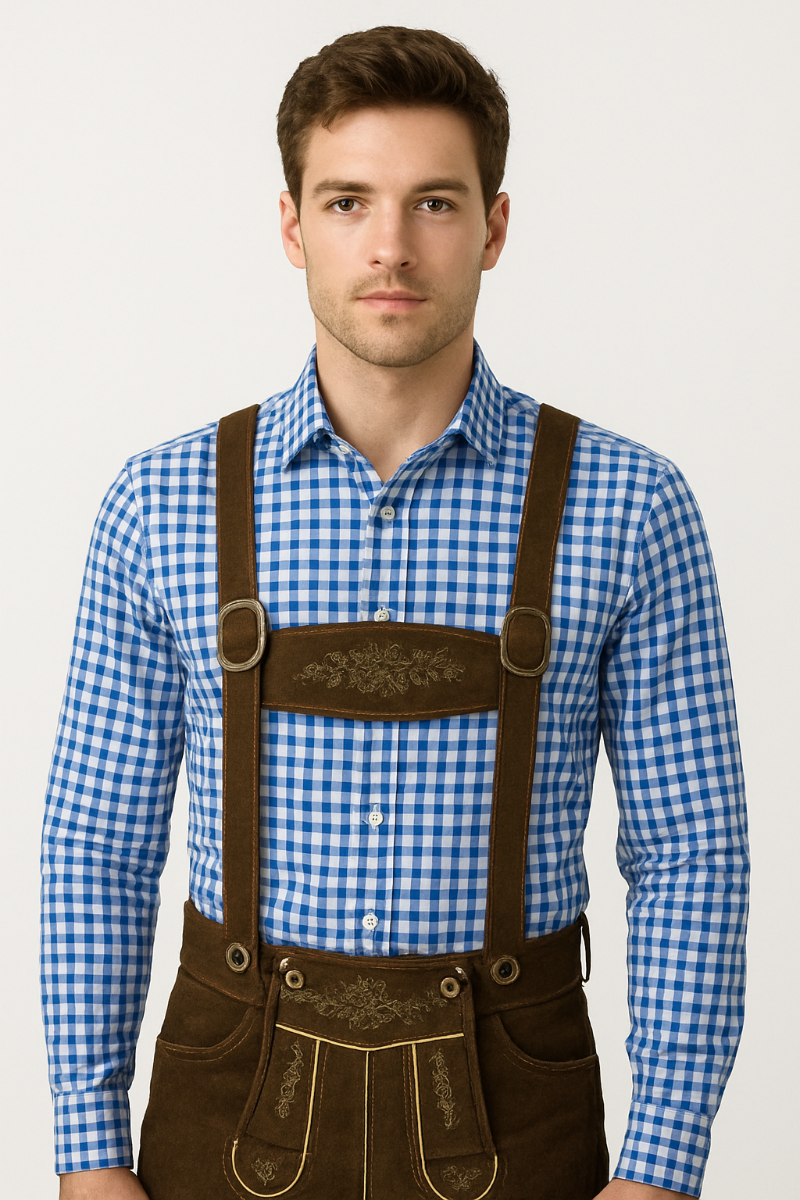 Trachtenhemd blauw-wit met lange mouw. Dit hemd is gemaakt van 100% katoen en de pasvorm is normal fit