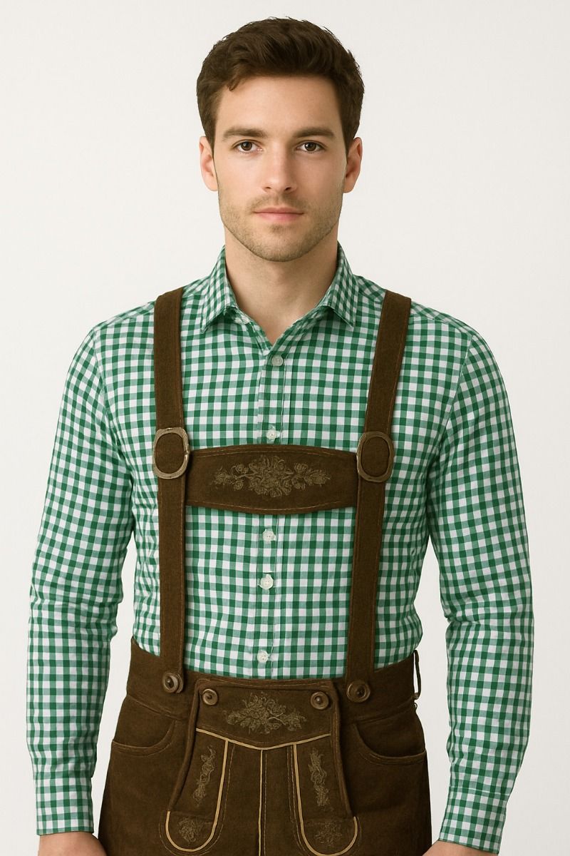 Trachtenhemd groen-wit met lange mouw. Dit hemd is gemaakt van 100% katoen in de pasvorm is normal fit