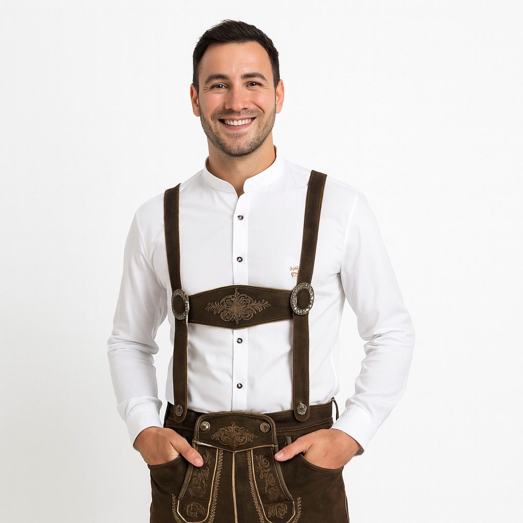Herenhemd met opstaand boord en lange mouwen. Het hemd is gemaakt van 100% katoen en heeft een normale pasvorm